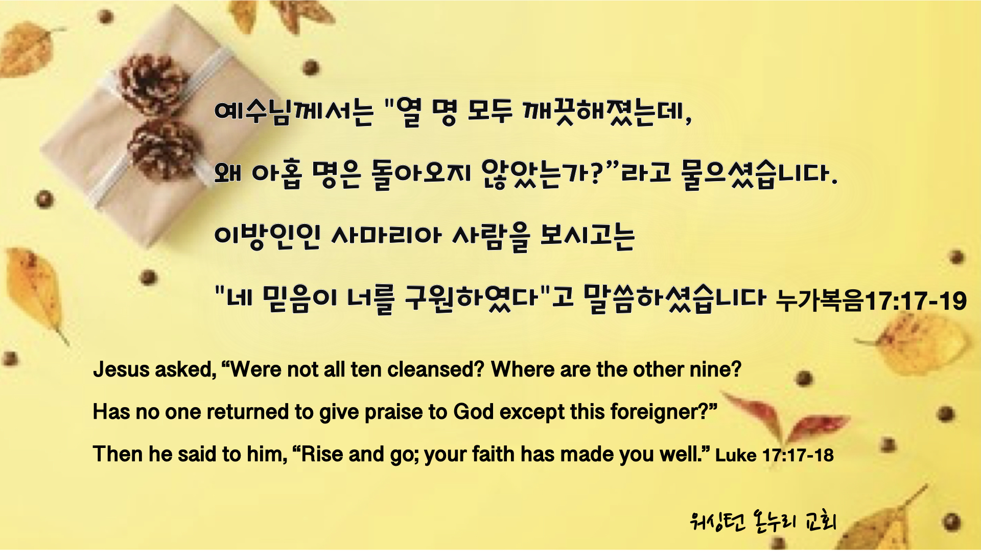 [워싱턴온누리교회] 2025년 11월 23일 추수감사주일 연합예배 | 주님의 은혜에 감사하는 한 사람 (누가복음 17:11-19) 김완중 목사