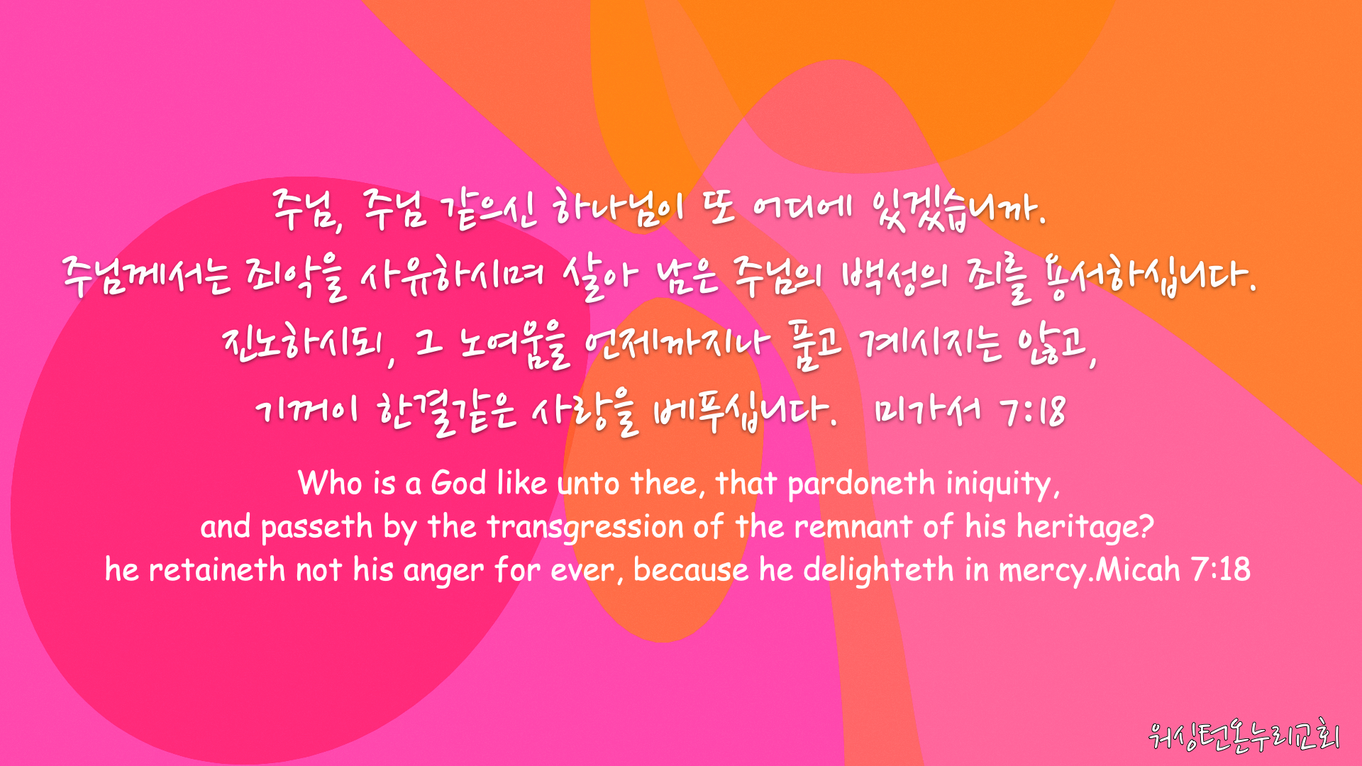[워싱턴온누리교회] 2026년 3월 1일 주일예배 | 주와 같은 하나님은 없네 (미가 7:18-20) 김완중 목사