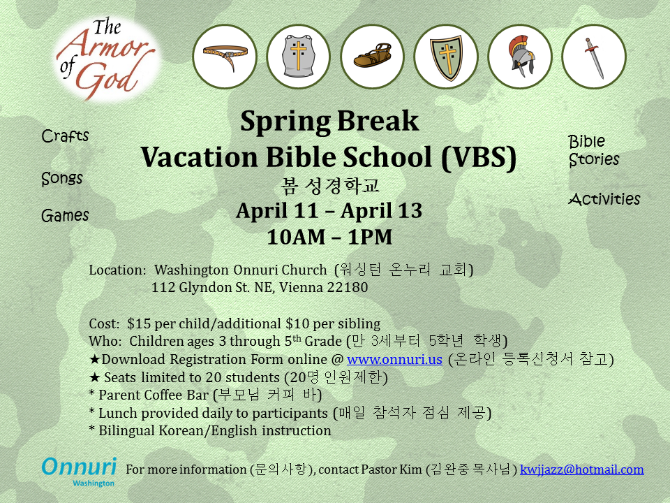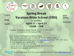 Spring Break Vacation Bible School(봄 방학 성경학교)