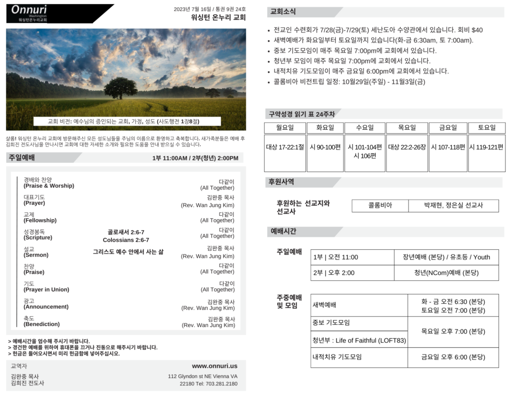 • ← [워싱턴온누리교회] 2023년 7월 9일 주일예배 | 초대교회 성도들의 신앙생활 (사도행전2:42-27) | 김완중 목사