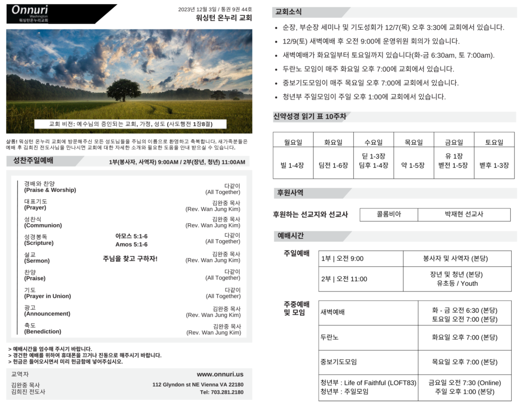 [워싱턴온누리교회] 2023년 12월 03일 주일예배 | 주님을 찾고 구하자! (아모스 5:1-6) 김완중 목사