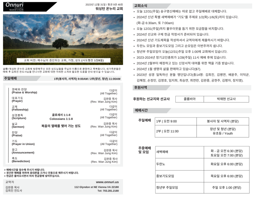 [워싱턴온누리교회] 2023년 12월 31일 주일예배 | 복음의 열매를 맺어 가는 성도 (골로새서 1:1-8) 김완중 목사