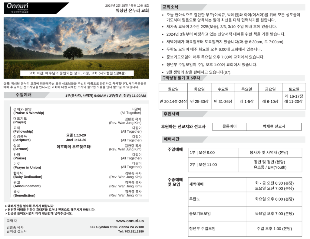 [워싱턴온누리교회] 2024년 02월 25일 주일예배 | 여호와께 부르짖으라! (요엘 1:13-20) 김완중 목사