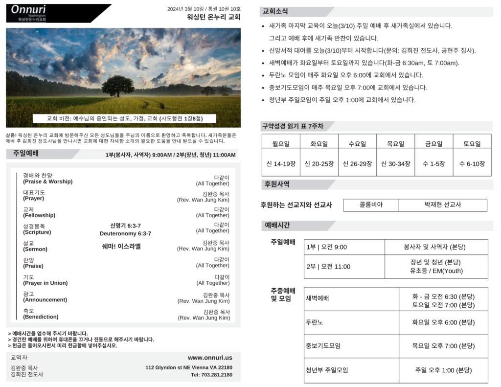 • [워싱턴온누리교회] 2024년 3월 10일 주일예배 | 쉐마! 이스라엘(신명기 6:3-7) 김완중 목사 →