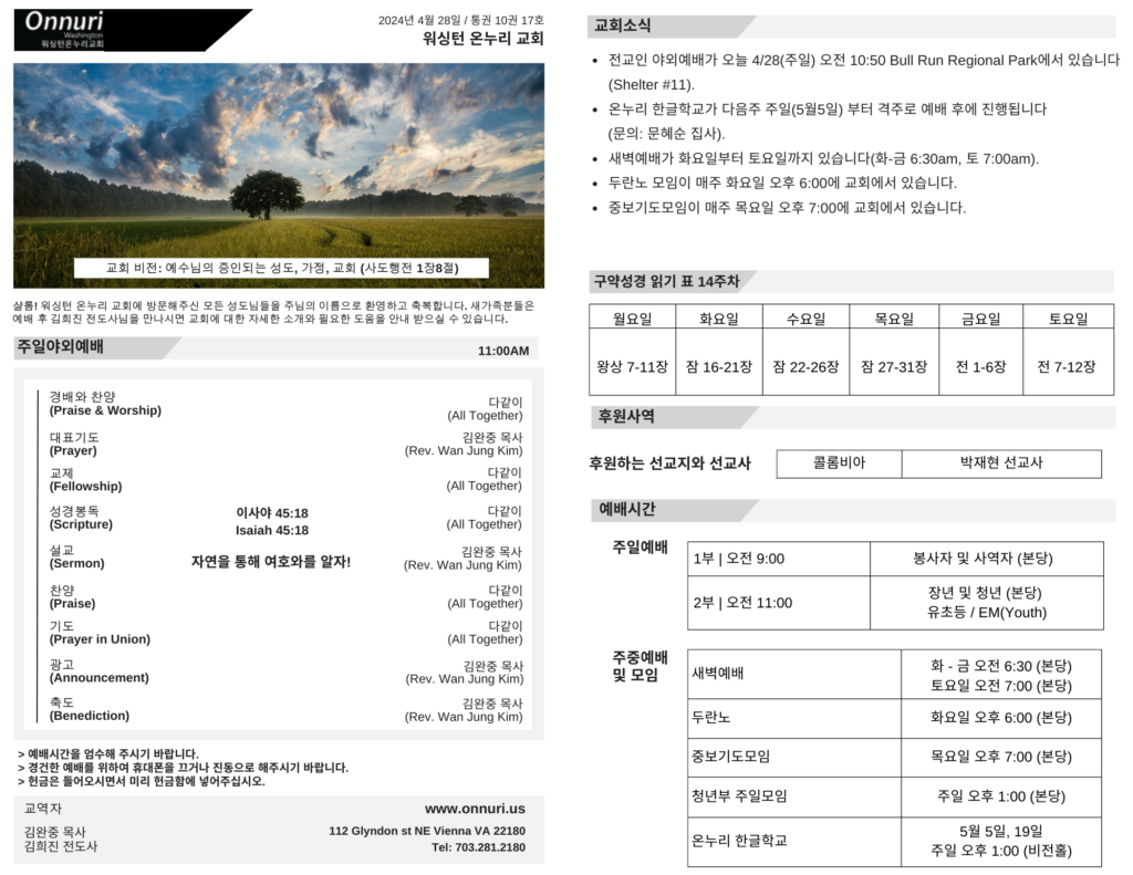 • 예배안내