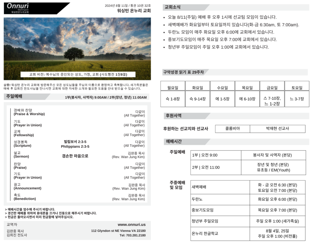 • ← [워싱턴온누리교회] 2024년 8월 11일 주일예배 | 겸손한 마음으로 (빌립보서 2:3-5) 김완중 목사