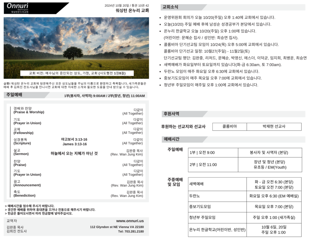 [워싱턴온누리교회] 2024년 10월 20일 주일예배 | 하늘에서 오는 지혜가 아닌 것 (야고보서 3:13-16) 김완중 목사