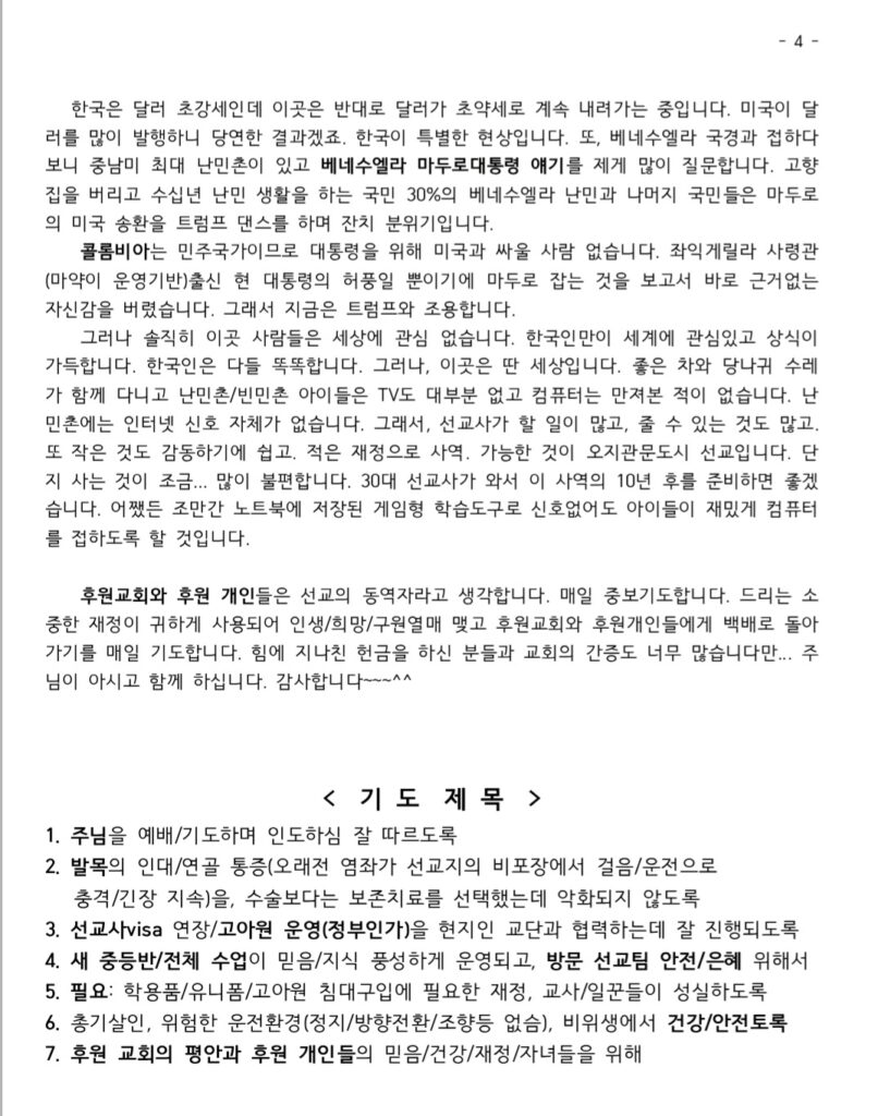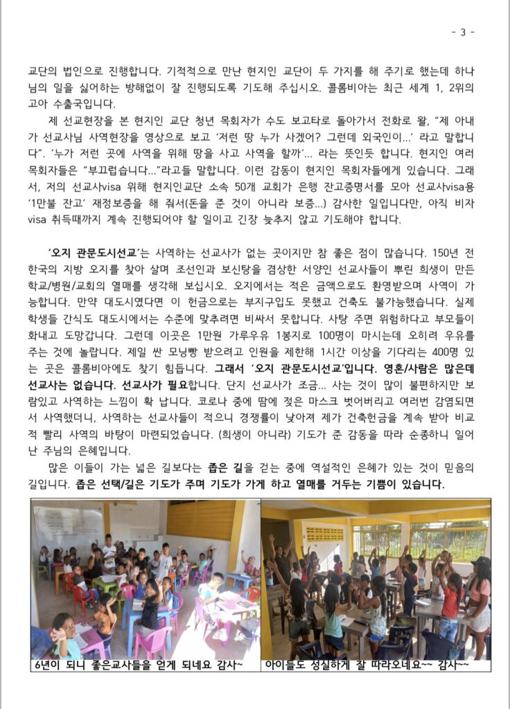 콜롬비아 박재현 선교사 2026년 2분기 선교편지